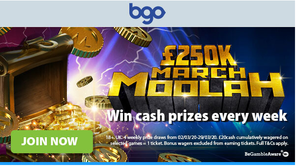 BGO are making March all about the moolah! Thousands of cash prizes every week during March.